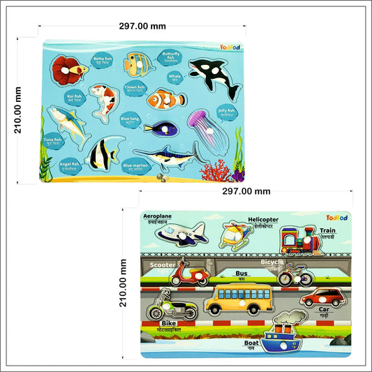 TodFod Fish & Vegetable Characters Knob & Pegged Puzzle for Kids