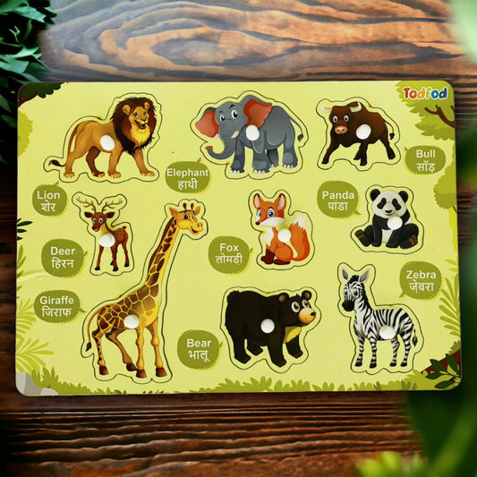 TodFod Wild Animals & Fruit Characters Knob & Pegged Puzzle for Kids