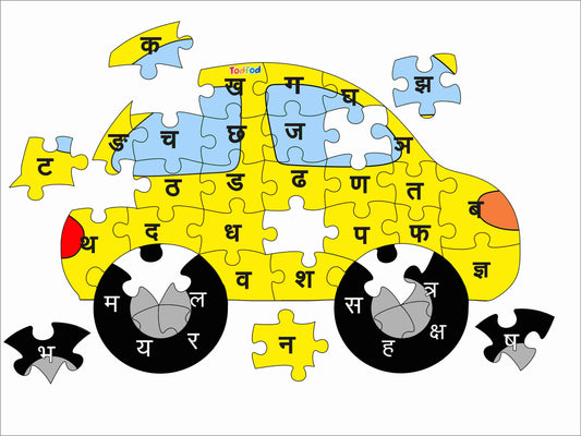 TodFod Wooden Jigsaw Puzzle – Car Shaped Hindi Consonants