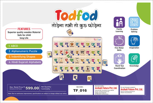 TodFod Wooden Hindi Alphabets Puzzle Toy for Kids