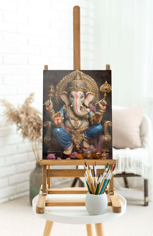 Traditional Ganesha Canvas Painting Devotional Wall Poster for Home Mandir & Religious Corners