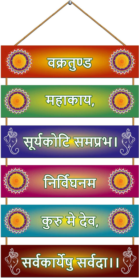 Traditional Ganpati Mantra Sanskrit Wall Art Colorful Multi Layered Wooden Hanging