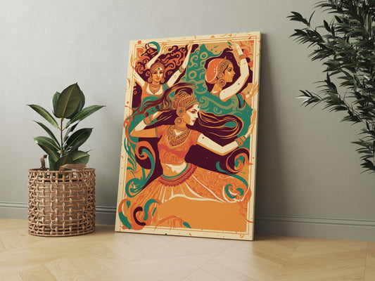 Traditional Indian Dance Wall Art Classical Bharatanatyam Canvas Painting Ethnic Home Decor Frame