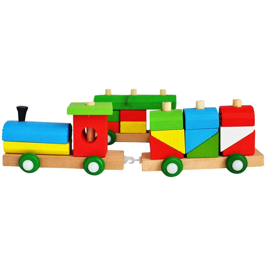 Trinkets & More - Shape Sorter Train Geometric Shapes Wooden Puzzle Stacking Toy Early Educational Toys Toddlers Kids 3 + Years