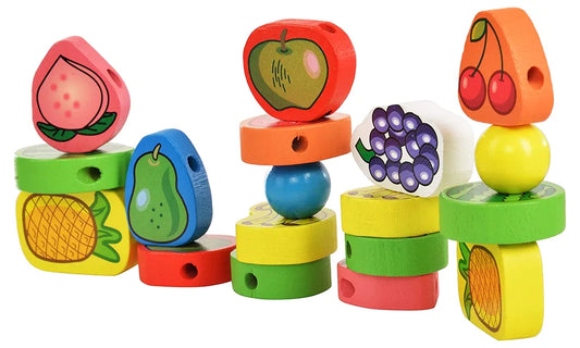 Trinkets & More Wood - 56 Piece Fruit Bead Game Stringing Beading Game 3+ Years Multi-coloured