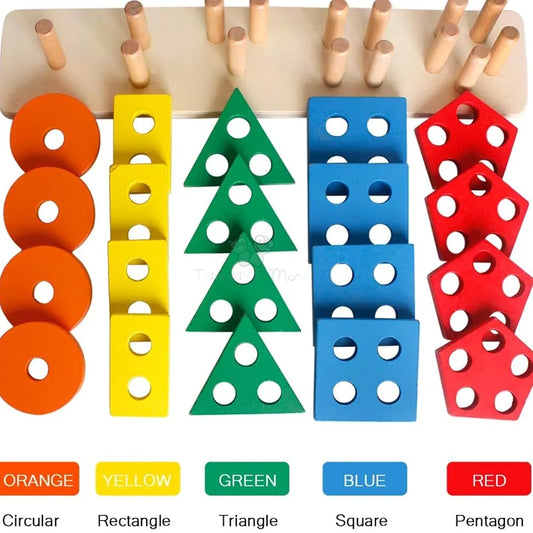 Trinkets & More 5 Column Geometric Shape Sorter Stacking Toy Puzzle For Kids 2+ Years Multicolor