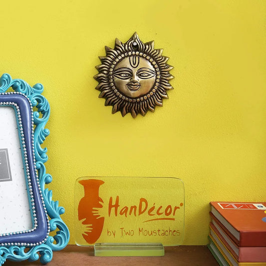 Two Moustaches Brass Smiling Surya Wall Hanging Antique Brown Standard