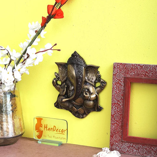 Two Moustaches Brass Ganesha Wall Hanging Brown Showpiece