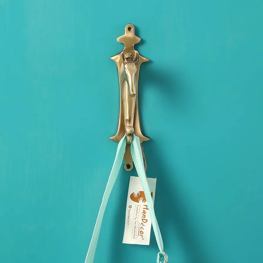 Two Moustaches Ethnic Indian Carved Brass Door Knocker