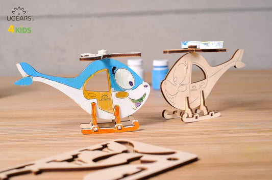 Ugears Helicopter 3D Wooden Jigsaw Puzzle Coloring Kit Ages 5+ 8 Pieces