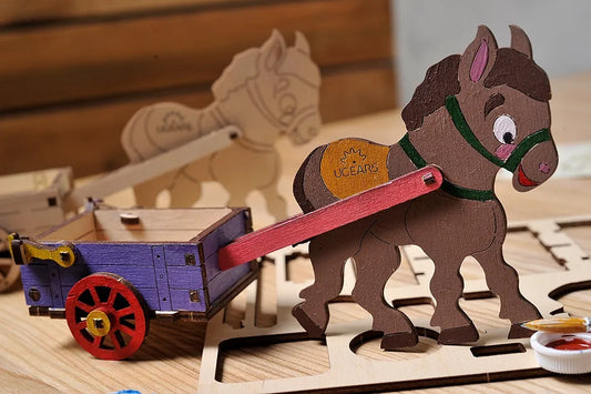 Ugears Donkey 3D Wooden Animal Jigsaw Puzzle Kids Coloring kit
