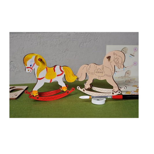 Ugears Horse Swing 3D Wooden Animal Jigsaw Puzzle Coloring Kit for Kids 5+