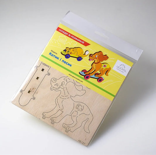 Ugears Kitty & Puppy 3D Wooden Animal Jigsaw Puzzle Games Coloring kit