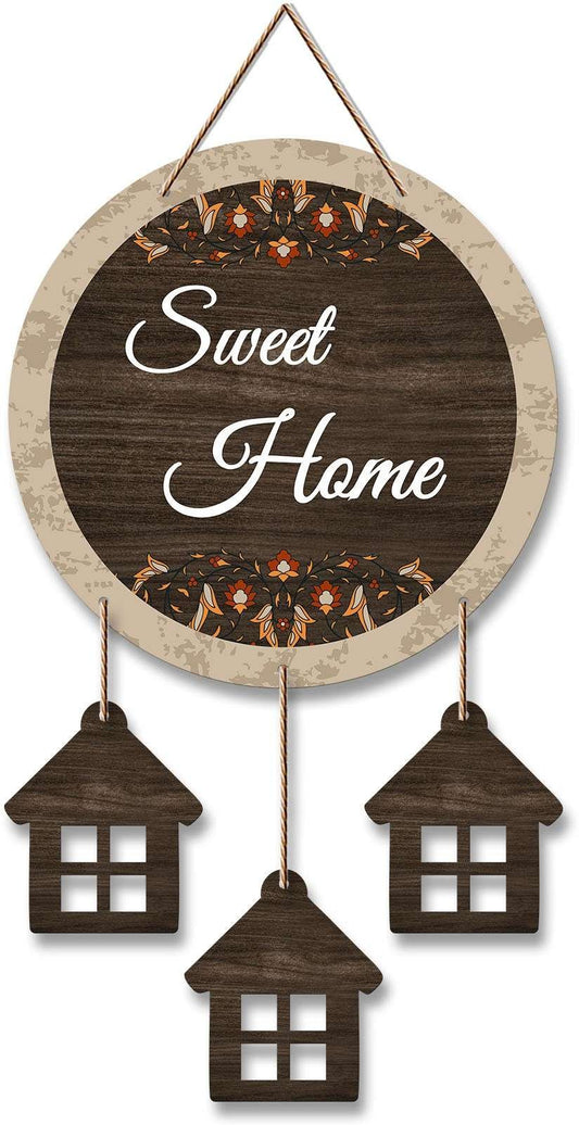 Vintage Style Sweet Home Sign Decorative Wall Hanging with House Cutouts for Entryway or Living Room