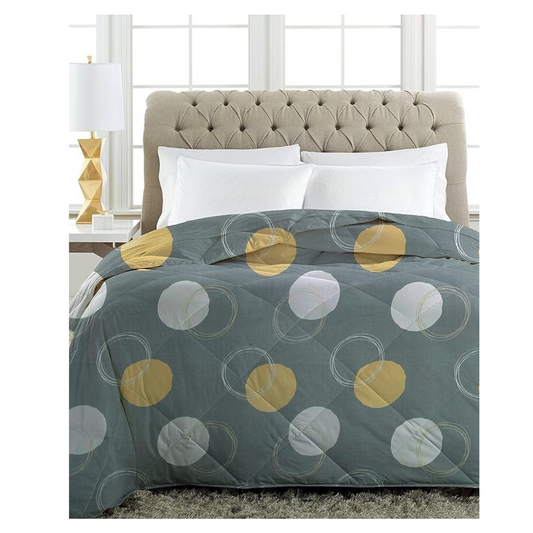 Bsb Home Beautiful Print Cotton Reversible Ac Comforter For Single Size Bed Polyfill Filled GreyYellow & White