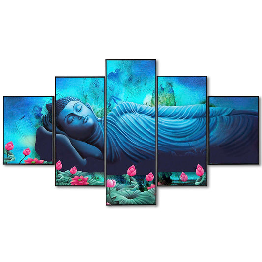 Buddha Blue Buddha & Gilded Elephant 5-Panel Canvas Wall Art (125 x 60 cm)