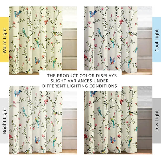 Cloth Fusion Blackout Printed Premium Window Curtains 5 Feet Long Set of 2 Ivory Bouquet