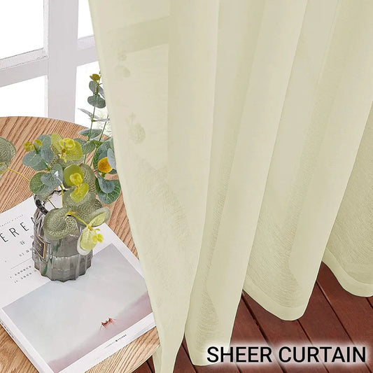 Cloth Fusion Cotton Feel Sheer Door Curtains 7 Feet Long Set of 2 Semi-Transparent Cream