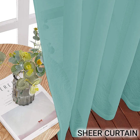 Cloth Fusion Cotton Feel Sheer Window Curtains 5 Feet Long Set of 2 Semi-Transparent Aqua