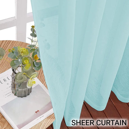 Cloth Fusion Cotton Feel Sheer Door Curtains 7 Feet Long Set of 2 Semi-Transparent Aqua