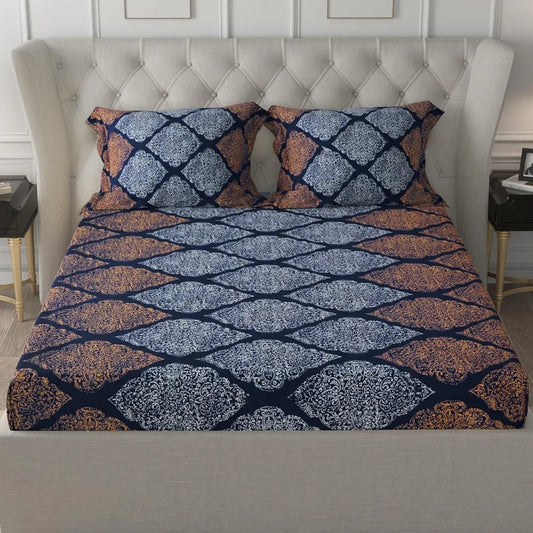 Cloth Fusion Elastic Fitted Queen Size Bed Sheet with 2 Pillow Covers Midnight Paisley Colour