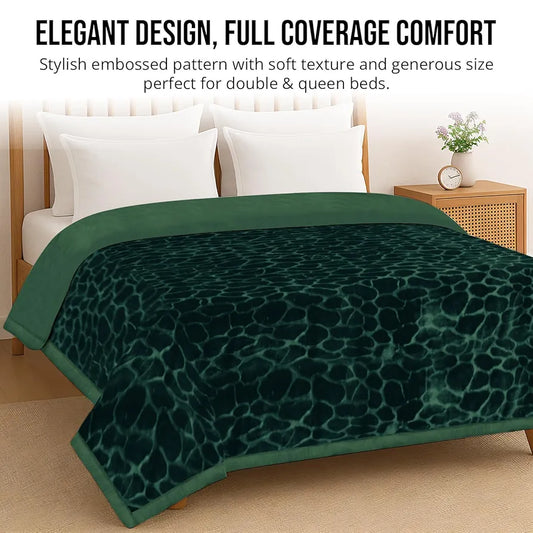 Cloth Fusion Floral Embossed Mink Blanket for Winter Double Size Soft Kambal for Comfort & Warmth Forest Green