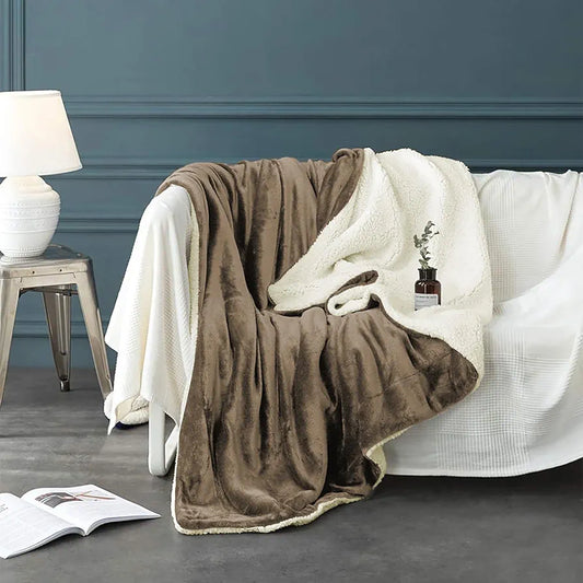 Cloth Fusion Fleece Sherpa Blanket for Winter Double Size Soft King Size Quilt Blanket Golden Beige