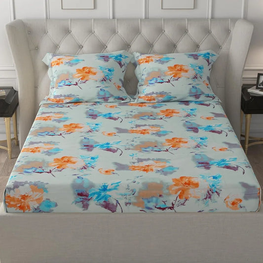 Cloth Fusion Glace Cotton Elastic Fitted Bedsheet for Double Bed King Size with 2 Pillow Covers Spring Bloom