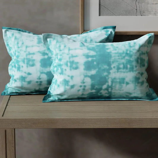 Cloth Fusion Glace Cotton Patchwork Pillow Cover Set of 2 with Envelope Closure Soft Pillow 200 TC Tie-Dye Blue