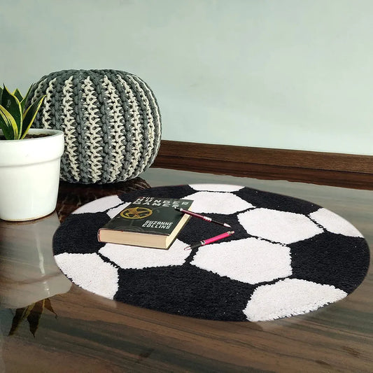 The Home Talk Kids Bath mat Floor Rug Football Design Cotton Round Anti-Skid Backing White & Black