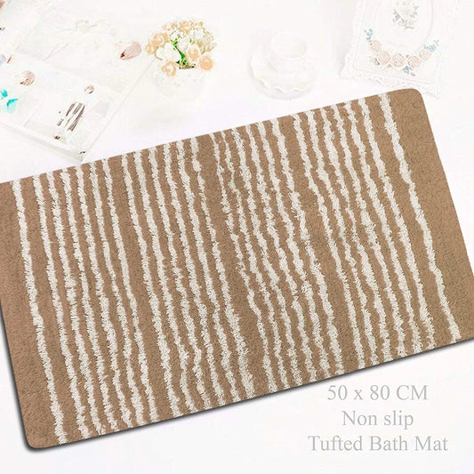 The Home Talk Cotton Bathmats Water Absorbent Runners Regular Striped Rugs Floor Mats