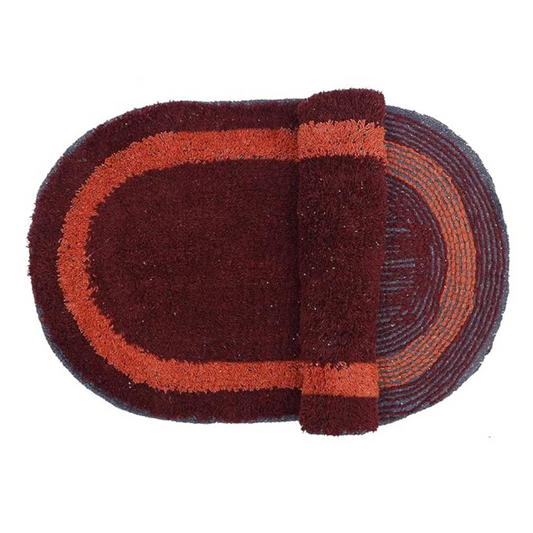 The Home Talk Cotton Bathmats Water Absorbent Runners Regular Striped Rugs Floor Mats Red Oval (Pack of 2)