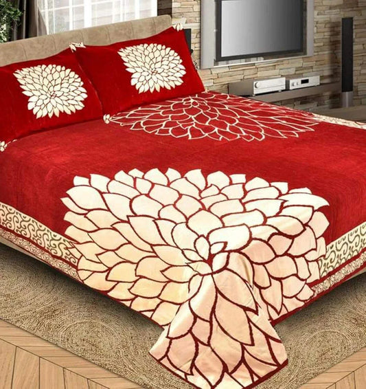 Fresh From Loom Chenille Velvet Floral 500 TC Heavy Bedsheet for Double Bed King Red Color with 2 Pillow Covers Dahila Red