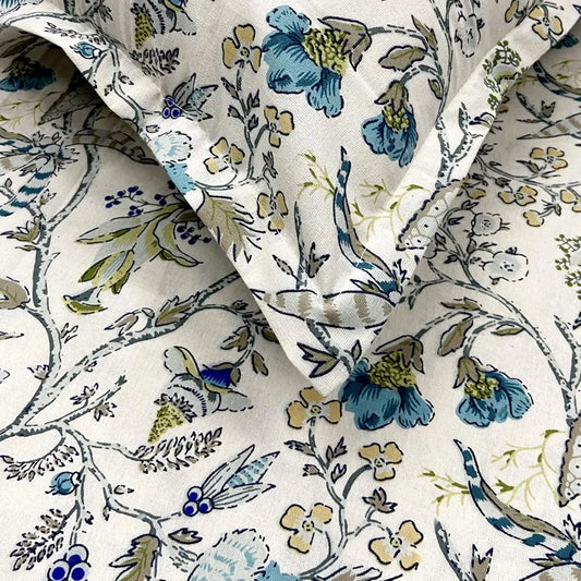 Divine Casa 144 TC Cotton Fitted Bedsheet for Single Bed 100% Cotton Floral Blue with 1 Pillow Cover Colour Iris Blue