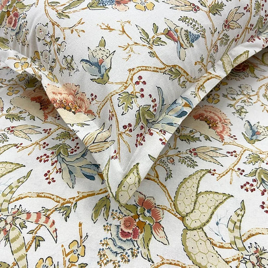 Sajavat Home 100% Pure Cotton King Size Floral Bedsheet Set with 2 Pillow Covers Colour Beige Anokhi
