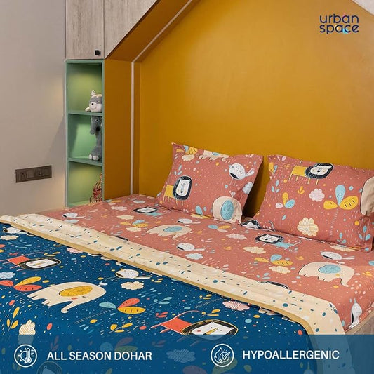 Urban Space Microfiber Cotton Reversible Dohar for Double Bed, AC Blanket Lion King Navy