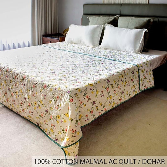 Urban Space All Season AC Blanket 3 Layered Super Soft Malmal Cotton Colour Yellow Floral 6