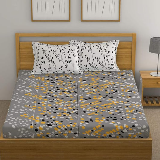 Huesland by Ahmedabad Cotton 144 TC Cotton King Size Bedsheet with 2 Pillow Covers - Grey & Yellow