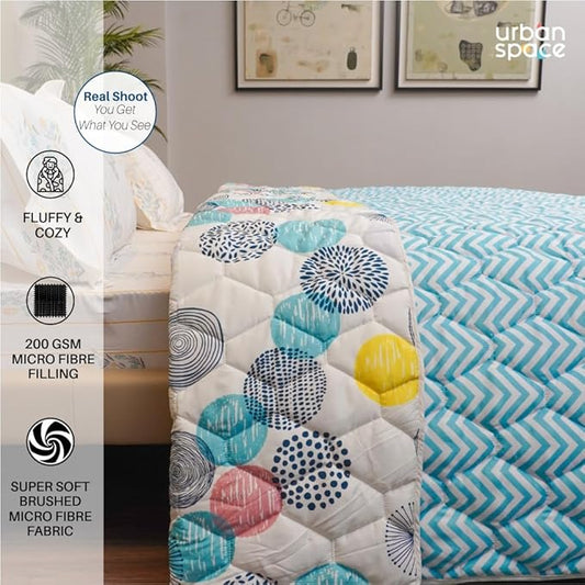 Urban Space Ultra Soft Quilted Winter Comforters for Single Bed Printed AC Blanket Colour Turkey Blue