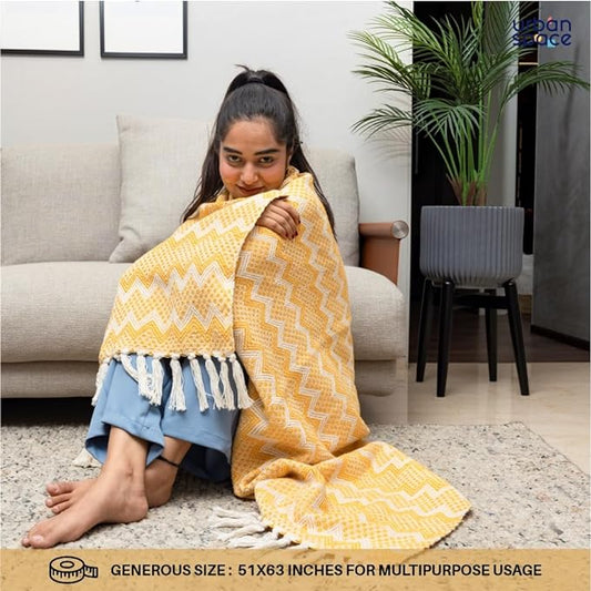 Urban Space Handmade Pure Cotton Sofa Throw Blanket Soft Decorative Throw for Living Room Colour Geometric Yellow