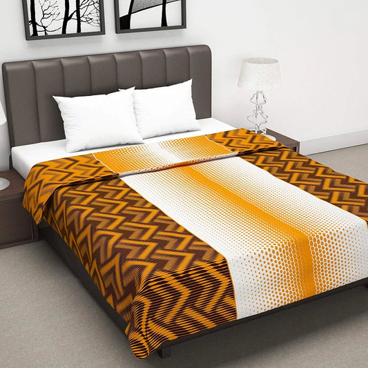 Divine Casa 120 GSM Microfiber Double Dohar Soft & Lightweight Throw Blanket Chevron Pattern Colour Orange Chevron