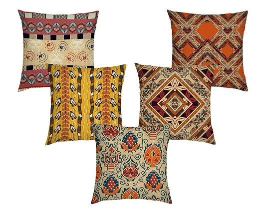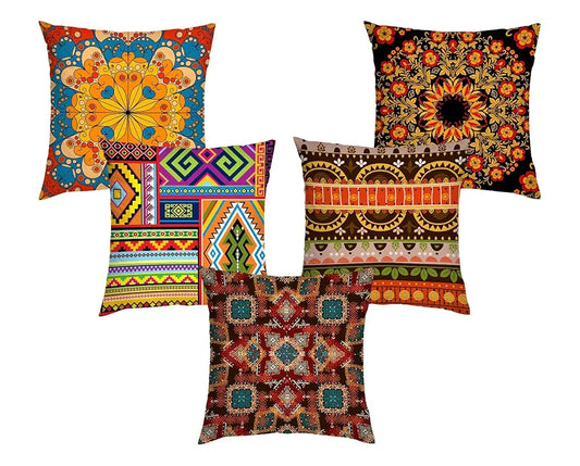 Aerohaven Jute 150 TC Vibrant Geometric & Mandala Printed Pillow Covers Set of 5