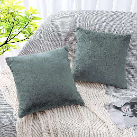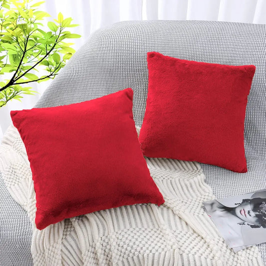 Luxe Home Cushion Cover Duble Side Rabbit Fur Plain Design Covers Set of 2 for Sofa Colour Skin