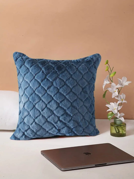 Luxe Home Cushion Cover Duble Side Rabbit Fur Diamond Design Covers Set of 2 Colour Blue