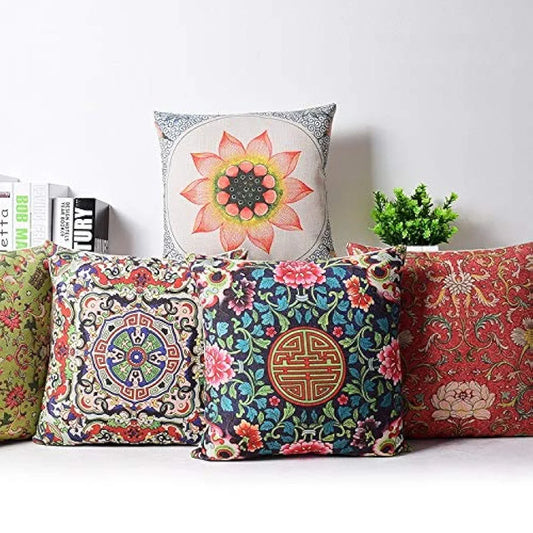 Aerohaven Decorative Hand Made Digitally Printed Abstract 5 Piece Cotton Cushion Cover Multicolour 175 TC