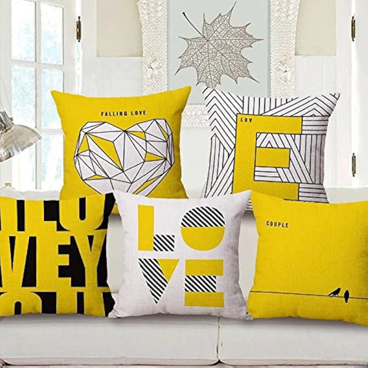 Aerohaven Decorative Hand Made Digitally Printed Abstract 5 Piece Velvet Cushion Cover Colour Yellow
