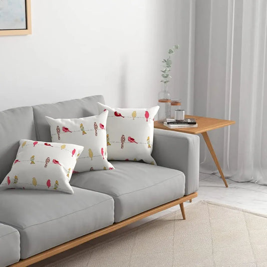 Urban Space Decorative Cotton Cushion Cover Set of 3 inch Cushion Covers for Sofa, Bedroom, Living Room Humming Bird Red