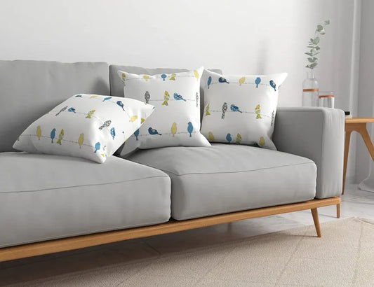 Urban Space Decorative Cotton Cushion Cover Set of 3 Cushion Covers for Sofa, Bedroom, Living Room Humming Bird- Blue