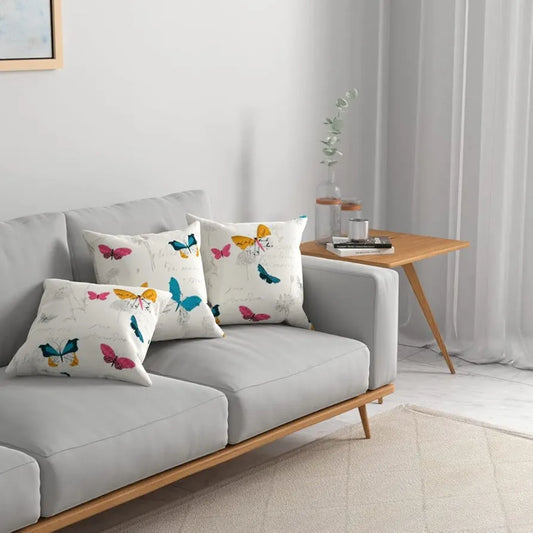 Urban Space Decorative Cotton Cushion Cover Set of 3 Cushion Covers for Sofa, Bedroom Butterfly Multicolor