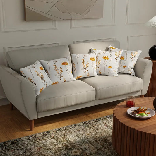 Urban Space Decorative Cotton 200 TC Cushion Cover Set Of 5 Cushion Covers For Sofa, Bedroom, Living Room Orchid Blooms - Yellow